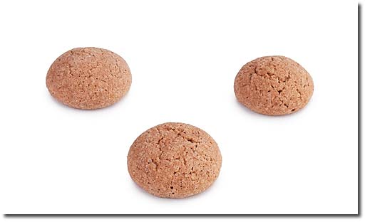 Utilizzare le mandorle private della loro pellicina, tritarle finemente ed unirle allo zucchero. Montare le chiare a neve ed unirle allo zucchero e alle mandorle. Fare delle palline della grandezza di una noce e disporle ben distanziate su una teglia che avrete ricoperto con carta da forno. Cuocere a calore moderato (100° C per 40 min circa). Nel caso variare gli albumi in base all'assorbimento delle mandorle.