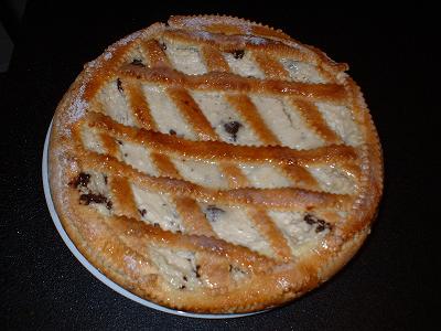 PER LA PASTA 120 gr di burro 300 gr di farina 100 gr di zucchero 1 uovo intero piu' 1 tuorlo la scorza grattugiata di 1/2 limone PER L'IMPASTO 400 gr di ricotta 2 uova intere 100 gr di zucchero la scorza grattugiata di 1/2 limone il succo di 1/2 limone 1 cucchiaio di farina cioccolato fondente a pezzetti a piacere GUARNIZIONE zucchero a veloPreparazione: