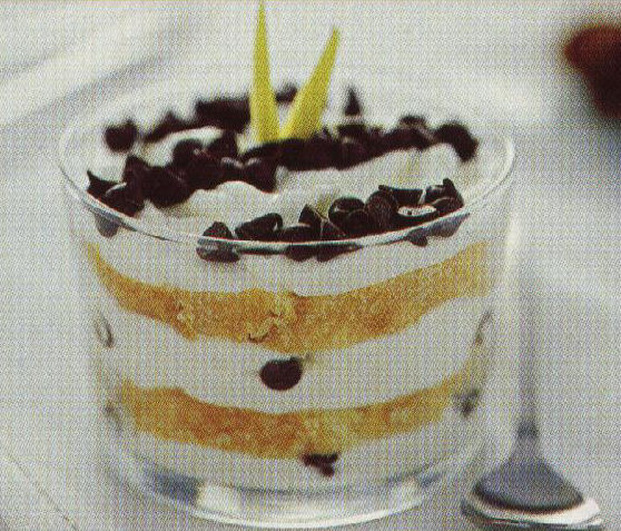 Per 4 persone: 50 gr di gocce di Cioccolato 250 gr di Mascarpone 100 gr di biscotti Savoiardi freschi 3 tuorli d'uovo 100 ml di latte di mandorla 3 cucchiai di zucchero semolatoPreparazione: