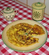 Ingredienti per 3 : 500g. di cipolle, 5 uova, olio extravergine di oliva q.b., sale q.b., pepe bianco q.b.Preparazione: