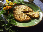 Sfogliare i carciofi togliendo le foglie più dure e, se necessario, tagliare la punta, come se si trattasse di cucinarli alla romana. Lavarli bene, tagliarli in 4 spicchi, asciugarli bene e accomodarli nella padella, larga abbastanza da permettere che fra i vari spicchi ci siano 3 millimietri di distanza, appoggiandoli sulla parte esterna. Sfilare i gambi e porre anche questi nella padella. L'olio extra-vergine d'oliva deve essere alto dai 2 ai 3 millimetri. Dopo 5 minuti di fuoco allegro, versarci le 8 uova appena sbattute: i tuorli devono essere disfatti, ma non così il tessuto della chiara. Attenzione: la frittata non si rigira, altrimenti abbiamo un'omelette, specie se le uova sono state montate. E' chiaro che le uova devono fare un velo sottile, altrimenti si bruciano sotto e restano crude sopra, perciò la padella deve essere abbastanza ampia. Il sale si mette quando è sul piatto, così pure l'eventuale girata di pepe.