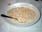 Ingredienti per 6 : kg. 1 di gnocchi di patate (o pasta fresca) gr. 125 di gorgonzola/mascarpone gr. 125 di gorgonzola piccante gr. 250 di noci (i gherigli) gr. 75 di burro 2 spicchi d'aglio 1/2 bicchiere di vino bianco q.b. parmigiano grattugiato q.b. noce moscata, q.b. sale, q.b. pepe nero, q.b. peperoncinoPreparazione: