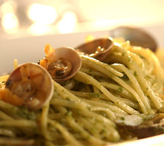 Dosi per 4 persone: 500 grammi di spaghetti 600 grammi di vongole fresche 6 spicchi d'aglio un paio di ciuffetti di prezzemolo 8 cucchiaini di bottarga di muggine olio extravergine d'oliva salePreparazione: